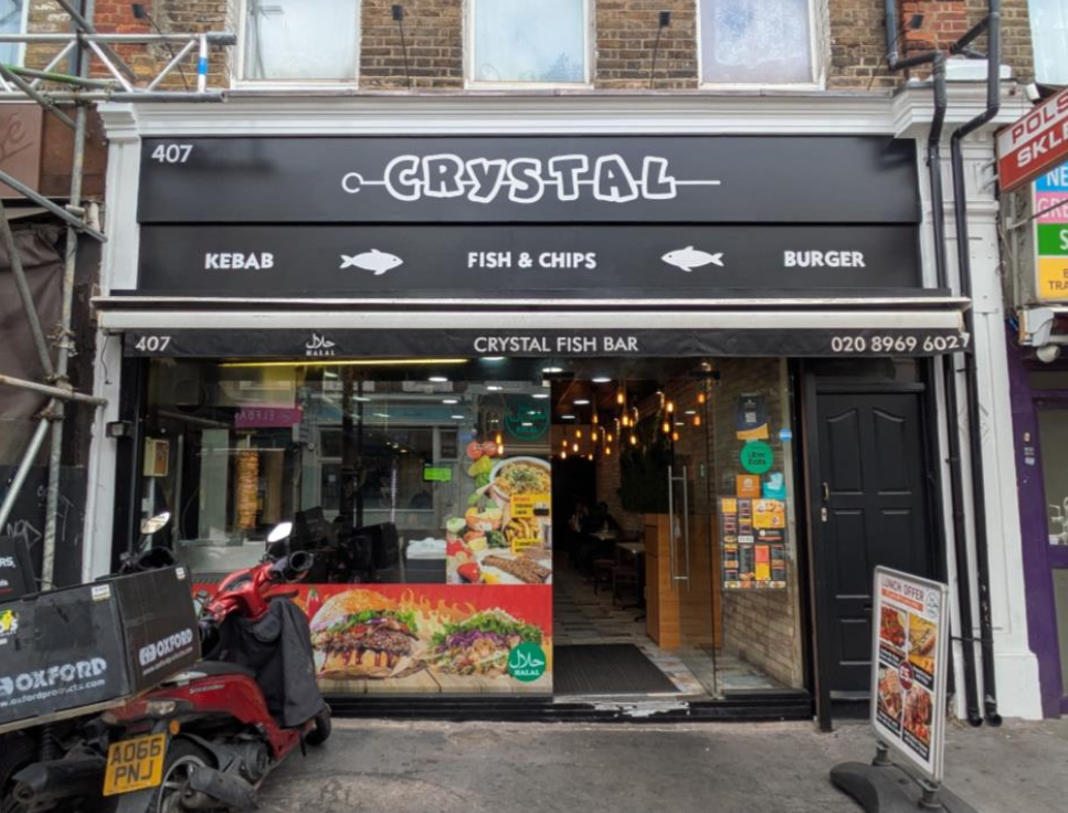 - Crystal’s Fish Bar (407 Harrow Road), with a contemporary monochrome update